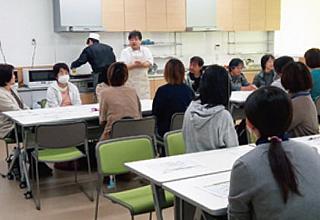 「クリスマスチキンはお店で売っているけれど、家で作れたらいいね。骨付きチキンのことを知りたいね!」という声から開催しました。ご夫婦での参加もあり、みなさんしっかりノートを取って熱心に勉強されていました。