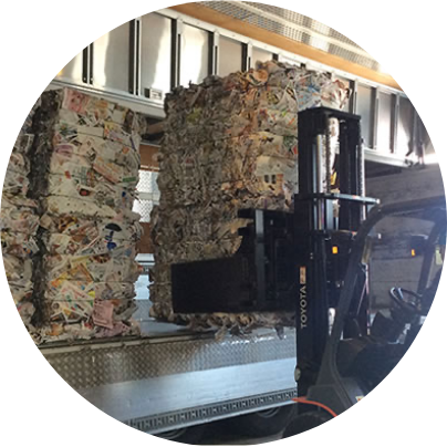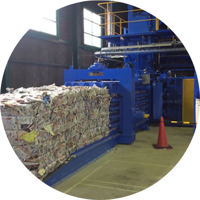 - ●組合員のみなさんから回収した商品案内や卵パック、内袋などの資源を集め、再生資源として利用できるように圧縮したり、容積を減らす処理をします。
