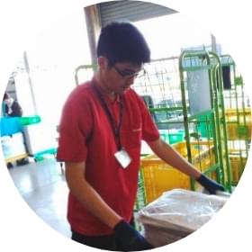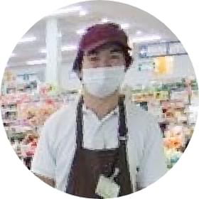 農産部門でイキイキと活躍しています。品出しやバラで入荷した商品の袋詰め加工をていねいに取り組んでいます。焼き芋も担当し、焼き上がりを手の感触で確かめて見栄えよく並べます。サービス業務では、店内放送やカゴの消毒などを積極的に行っています。大きな声でのあいさつは、職場のみなさんのお手本になっています。