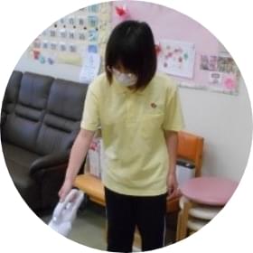 片本さん居室や浴室など掃除全般や食事の準備・配膳、シーツ交換などさまざまなことを担当していて、ていねいに取り組んでいます。またチェック表を活用してミスがないように努力しています。初めは覚えることが多く大変そうでしたが、今はみなさんからよく気が付き助かると頼りにされています。