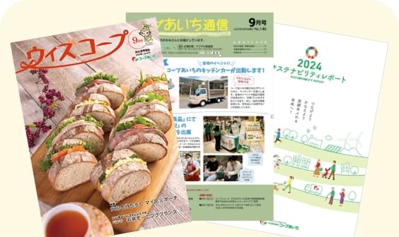 私たちは、「安心・信頼・くらしつながるコープあいち」をめざし、食とくらしの安全・安心、平和で住みよい豊かなまちづくりと持続可能な社会の実現に積極的な役割を果たします。