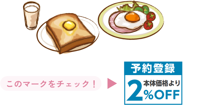 忙しい朝に食材の買い忘れがあると大変。牛乳やパン、ウインナー、バナナなど、朝食の食材が予約できるのが便利。疲れがたまる週末でも、ついうっかりの心配がありません。夕食で活躍する肉類も予約しています。