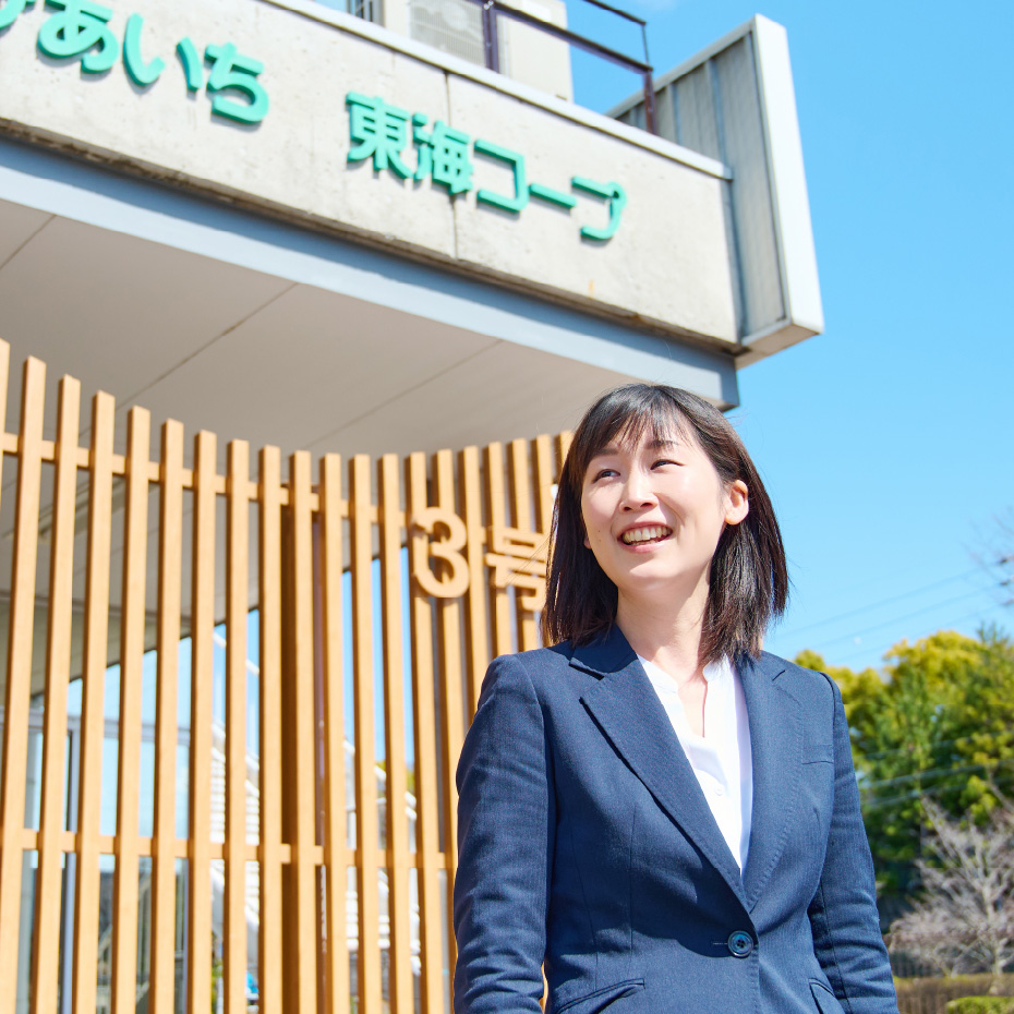 学生時代から人と話す仕事がしたいと思っていました。“地域のための非営利組織”というコープあいちの考え方や仕組みに興味を持ち、福利厚生も充実していたので長く働いていけそうな雰囲気を感じて入協を決めました。地域担当として宅配業務を経験し、3年間の産休・育休を経て復帰。復帰後は人事部安全運転推進課で安全運転に関するデータや部内免許制度の管理などを行いながら、2人の子育てと仕事の両立にチャレンジしています。