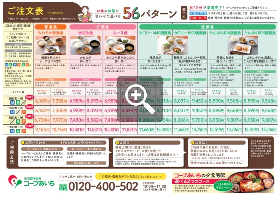 コープあいち加入と介護食・医療食のご案内をいたします。ご加入の際は、出資金1,000円をお預かりします。 出資金のよくあるご質問についてはこちらへ -