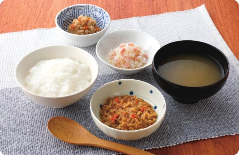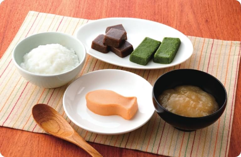 できあがったおかずをムース状にして、歯ぐきや舌でつぶせるようにしました。お料理の味を楽しめます。