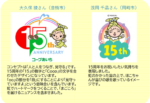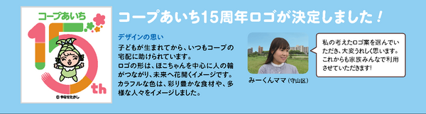 【ロゴマーク決定】「コープあいち創立15周年」たくさんのご応募ありがとうございました!!