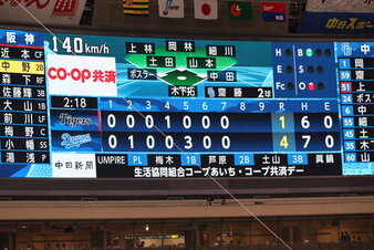 コープあいちの組合員のみなさんから抽選で選ばれた50組:100人の方と一緒に応援!試合は、4対1で中日ドラゴンズが勝利しました。