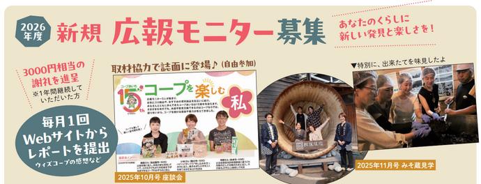 2026年度の組合員情報誌「ウィズコープ」広報モニターを募集します。