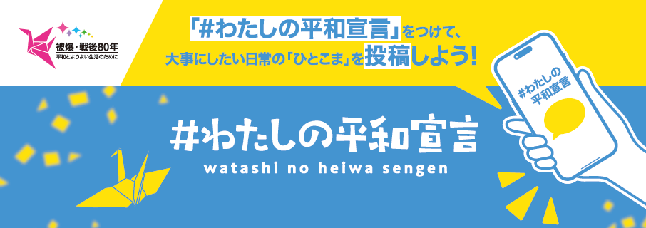 被爆・戦後80 年の今年、平和な日常を大切に思う気持ちや写真を投稿する「#わたしの平和宣言」キャンペーンを展開中です。みんなの投稿が集まって、みんなの思いが重なって、平和の輪が大きく広がっていきますように!