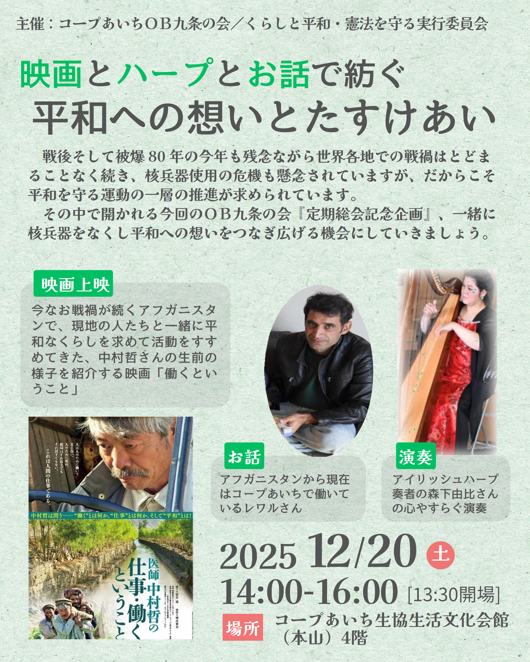【参加者募集】映画とハープとお話で紡ぐ 平和への想いとたすけあい