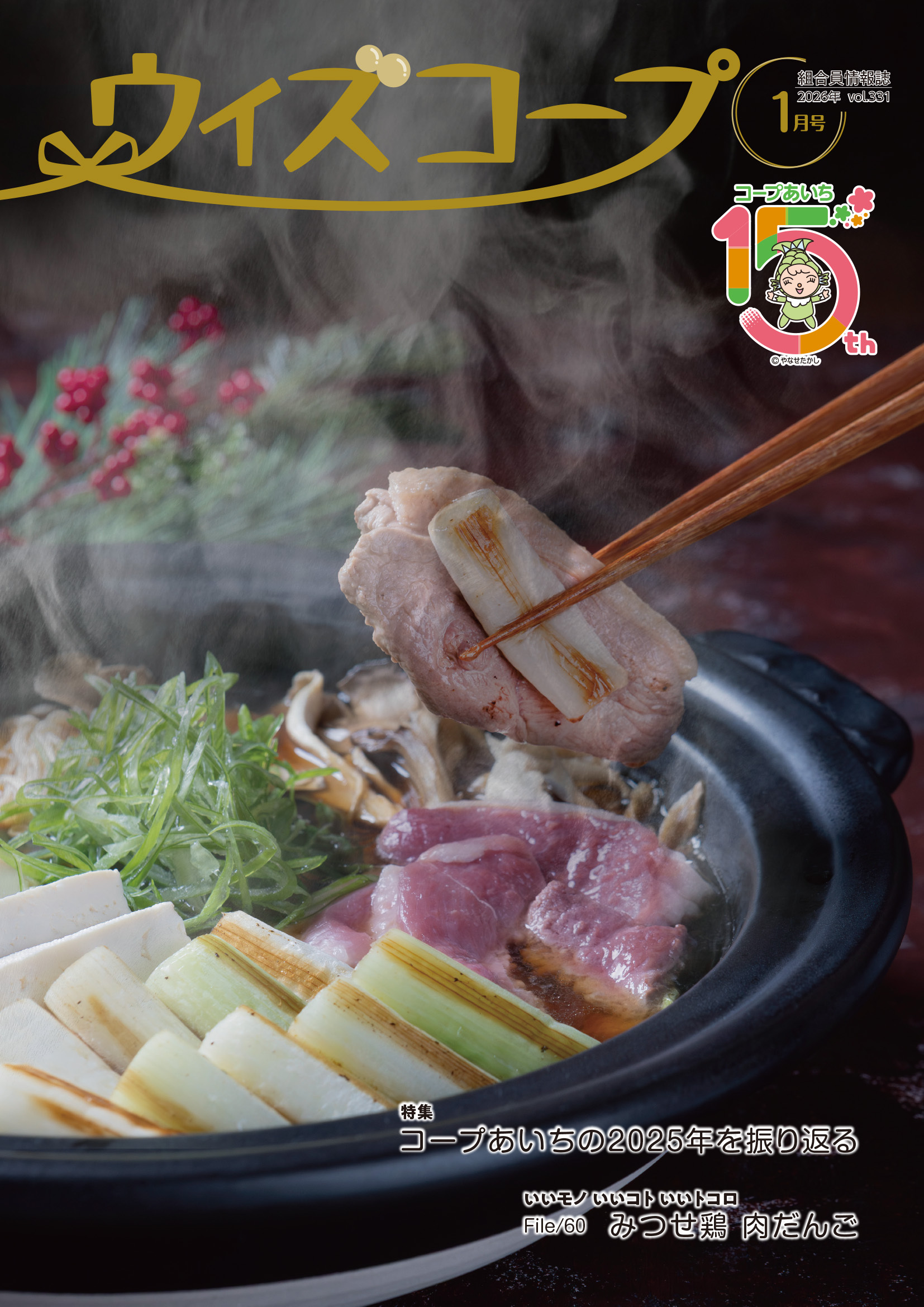 2025年、みなさんはどのような年でしたか? コープあいちは15周年を迎え、周年記念として、さまざまな企画と活動を行いました。そして、2026年も、みなさんのくらしをもっと笑顔にすべく、組合員のみなさん、地域のみなさんのくらしに貢献できるよう、いろいろな活動に取り組んでまいります。どうぞ、よろしくお願いいたします。