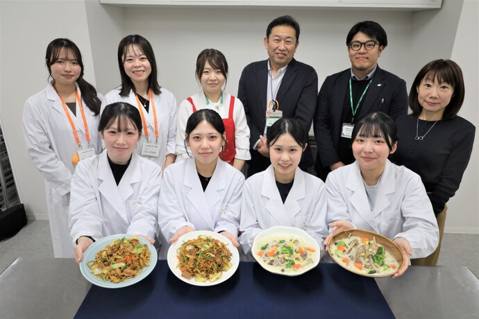 生活協同組合コープあいちは、名古屋葵大学(名古屋市瑞穂区)と連携・共同し、健康科学部 健康栄養学科で管理栄養士をめざす学生のみなさんと「ホワイトチーズソース煮込みハンバーグ」と「ホルモン焼きそば」の2品のミールキットを開発しました。
