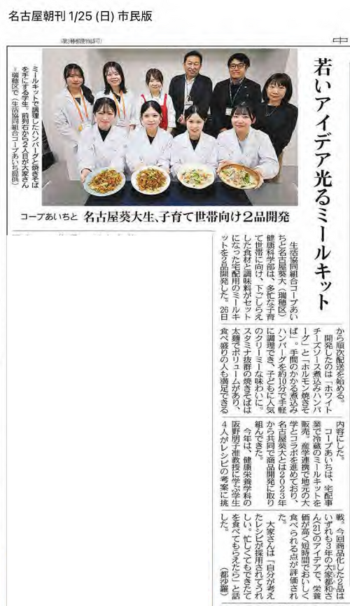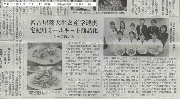 名古屋葵大学とのミールキット2品開発について、2紙の新聞社より紙面掲載をしていただきました。