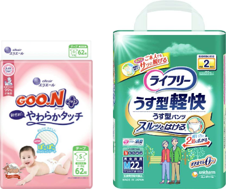 おむつやティシュ、トイレットロールなどのくらしの日用雑貨も豊富に扱います。