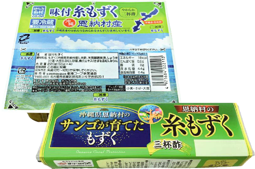 - 恩納村産味付糸もずく(やわらか三杯酢・ほんのりゆず風味・シークヮーサー) /