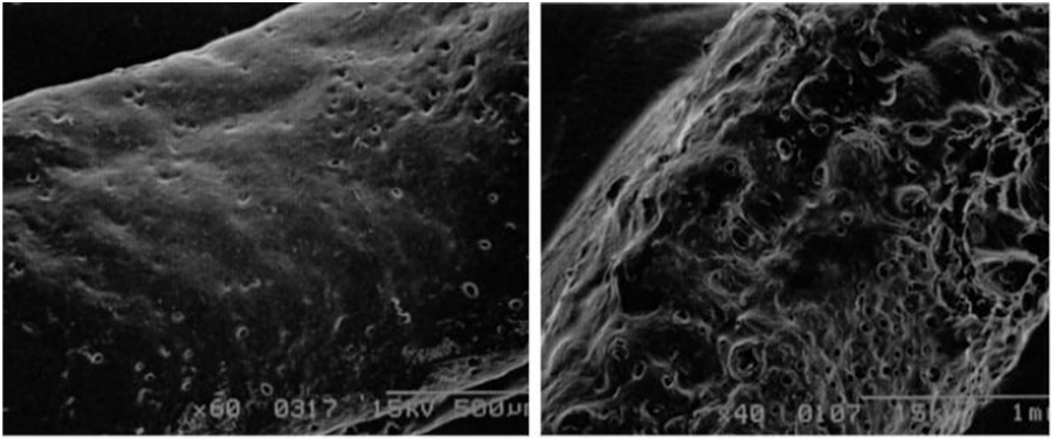 油揚げ麺の粗い表面に比べ、味一番拉麺の表面は滑らか