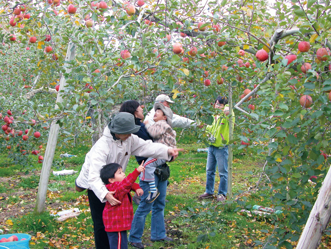 産地は日当たりがよく、昼夜の温度差も大きく、水はけのよい土壌と、おいしく色付きのよいりんごができる自然条件がそろっています。しかし、果樹栽培の収穫は1年に1回だけです。天候や環境、病害虫で出来栄えと収穫量が左右されてしまいます。それでもこの栽培方法を続けているのは、半世紀近く続く組合員との交流で生まれた信頼があるから。農園の「オーナーの木」を中心に、組合員が現地を訪れ、収穫体験などを通して交流しています。「おいしくて安全・安心なりんごを届けたい」その思いは今も続いています。