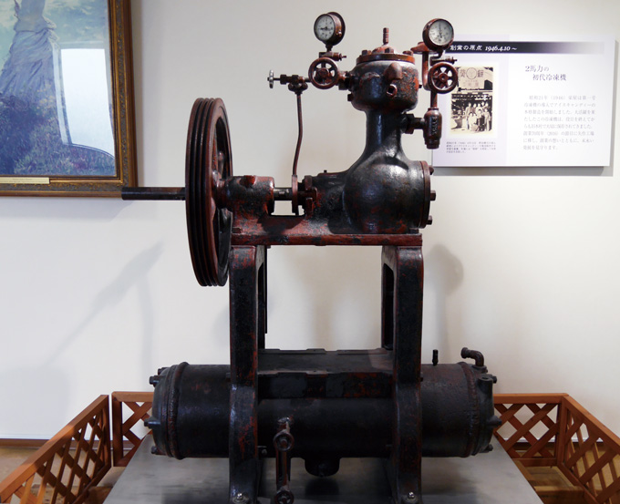 戦後間もない昭和21年(1946年)、第一号冷凍機の導入でアイスキャンディの本格製造を開始。 -