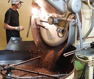 その日の気温、湿度で焙煎の時間が変わる。職人技でそのタイミングを見極める。 -