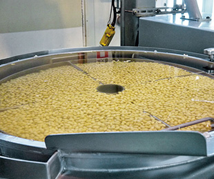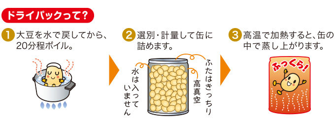 大豆の水分が蒸気となって缶の中を対流し、大豆をふっくらと蒸し上げる。 -