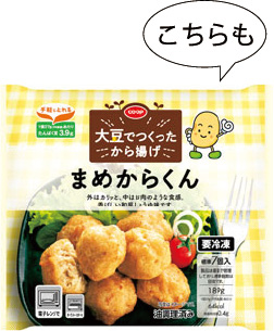 大豆たんぱくを主原料にした、しょうゆ風味が香ばしいから揚げ。