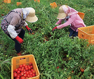 加工用トマトは栽培が難しく、高温や直射日光で品質が劣化してしまいます。トマトは順に熟すため一度に収穫できず、夏の最中、真っ赤に完熟したものだけを収穫していきます。生産者は