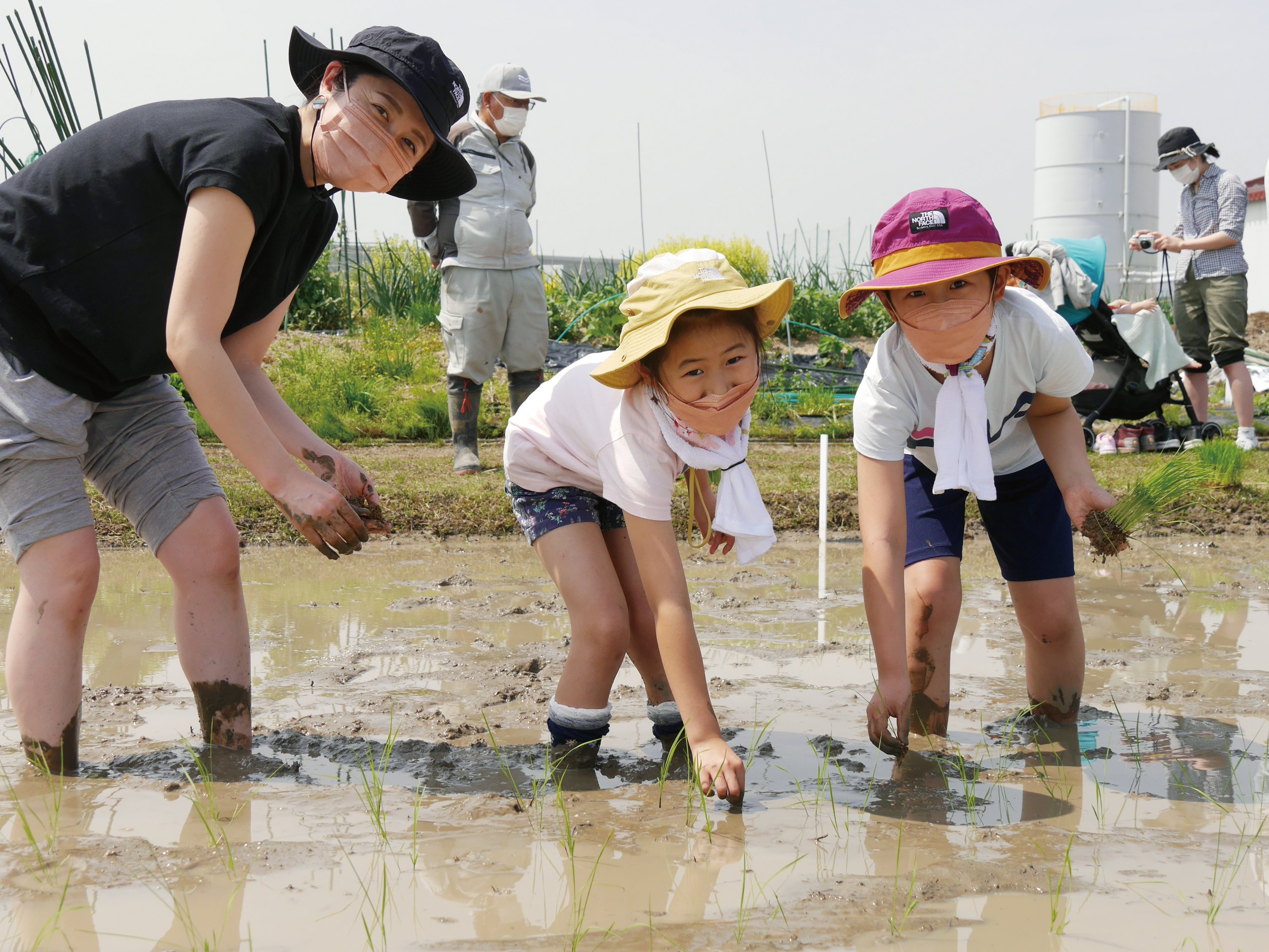 生産者と交流ができることも大きな特徴です。田植えや稲刈りの交流で、田んぼの役割や米農家の現状などを学習してきました。米の利用は食料自給率のアップにもつながります。ここでしかできない貴重な体験は、大人も子どもも食について考える機会となっています。