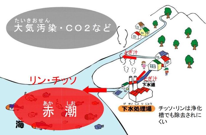 とぎ汁には、窒素・リンが含まれています。下水処理場が完備されている地域では、汚濁物質はほとんど除去できますが、窒素とリンは完全に取り除くことができず、川や海に流されます。これが植物性プランクトンのえさになり、赤潮やヘドロの堆積など、水質汚染の原因になっています。とぎ汁を出さない無洗米は「水質汚染の防止」につながり、海や海岸の生態系の保護にもつながります。
