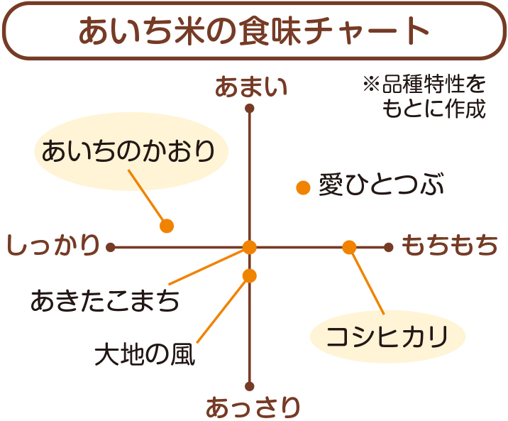 愛知県で栽培される米は、このような地域に対応できるよう品種改良によって開発されており、米の質や食味の向上、病気や気候変化に強く、農家が栽培しやすい米を開発するために行われています。