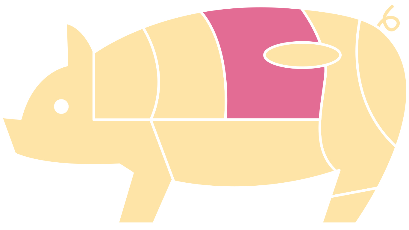 ロース肉はきめが細かく、適度にうま味のある脂肪を含み、やわらかく仕上がります。