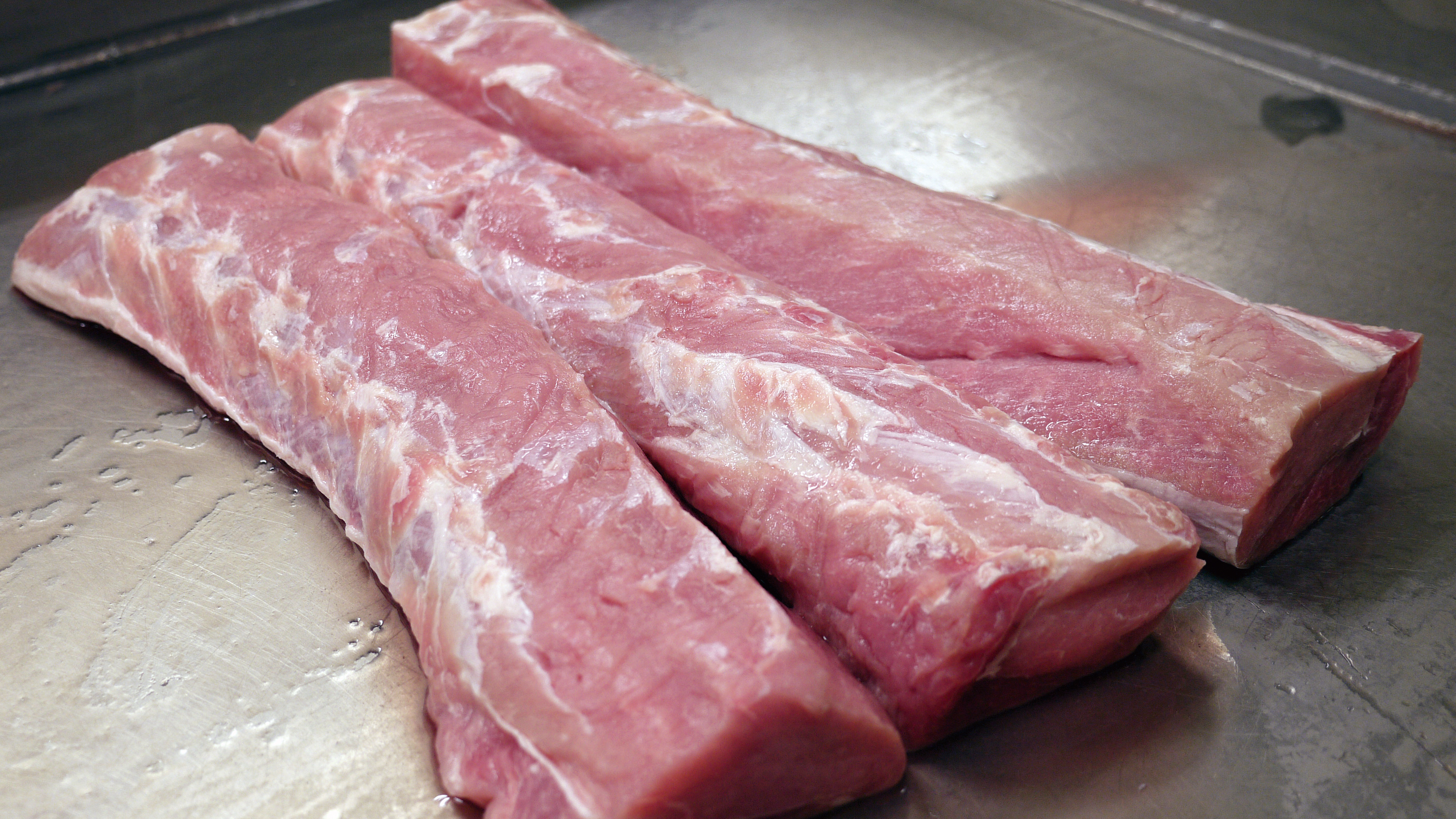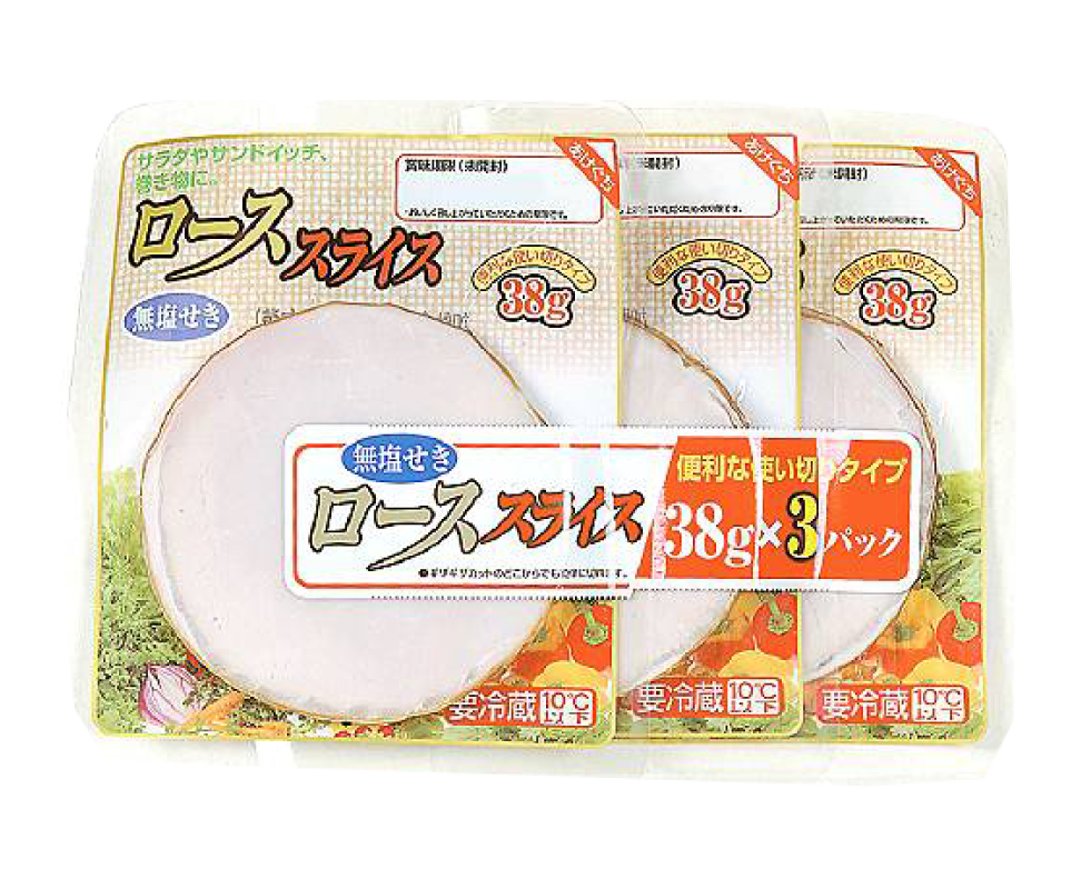 ロースハムスライスは、豚ロース肉(背中の肉)の塊から作られています。