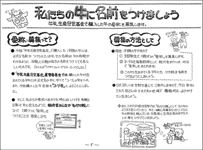 1980年初頭、基金を募り乳牛を購入。組合員のみんなで愛称をつけた。