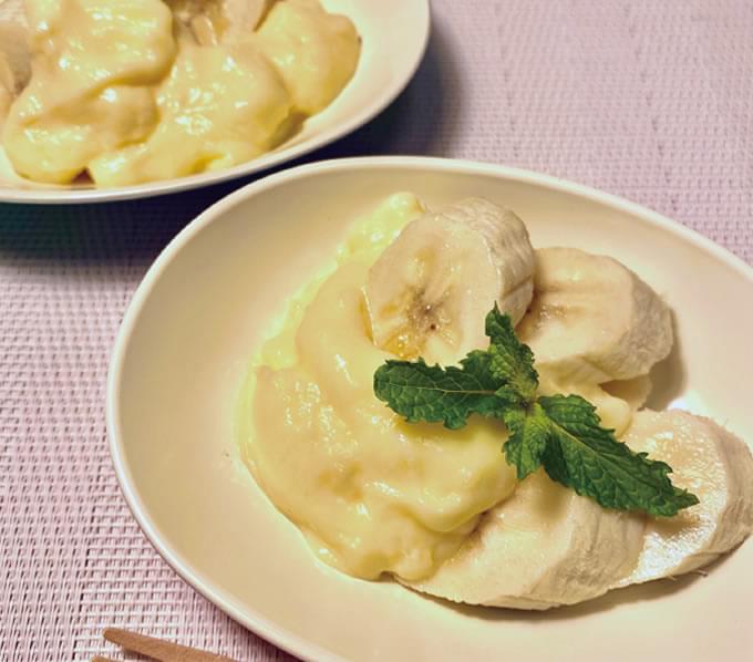 電子レンジでできる簡単レシピです。 バナナカスタード