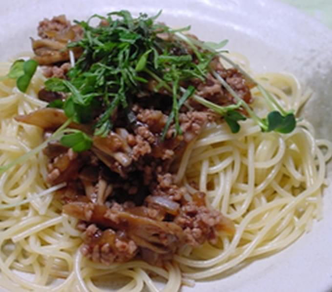 コープ産直若鳥のトーノーデリカとのコラボメニュー 肉みそきのこスパゲッティ