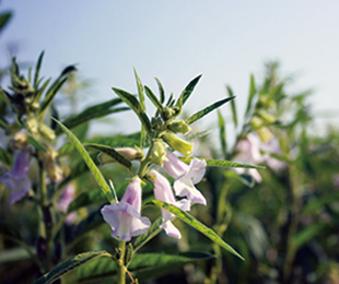 種をまいてから40~50日で花が咲き始め、ごまのサヤができる。 -
