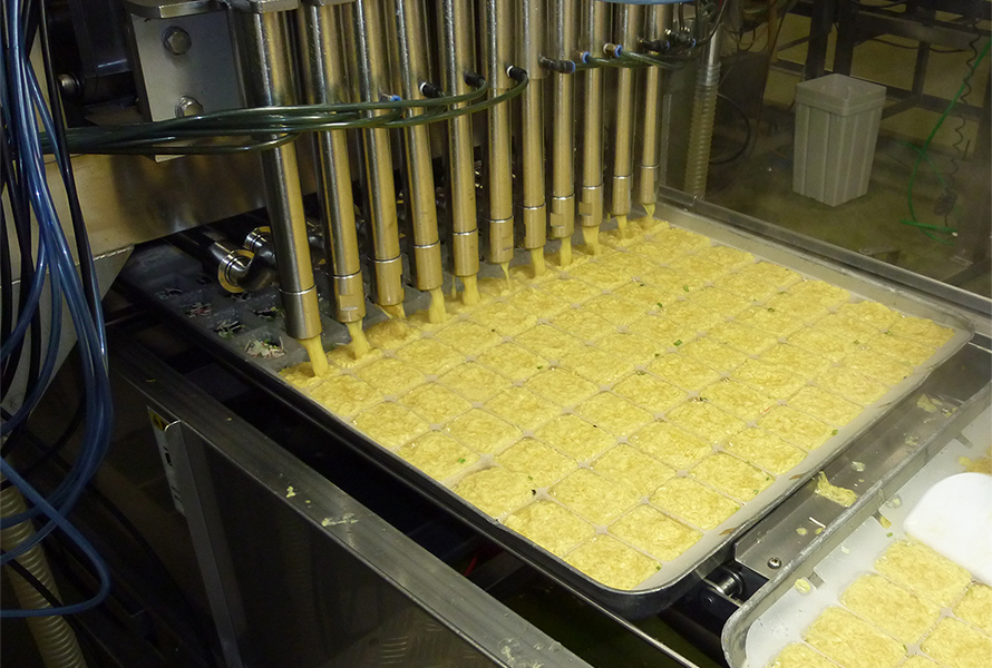 粉末スープの場合、一般的に熱風を当てて乾燥させるので、短時間で完成しますが、フリーズドライは、上記のように液体を一度凍結し、気圧の変化でじっくり乾燥させるので、完成までに3~4日かかります。熱を加えないため食材の風味・食感がそのまま残るのです。