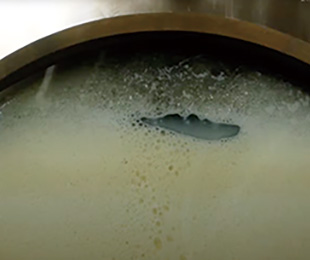 泡立った豆乳を真空にすることで、泡を取る(マルツネ) -