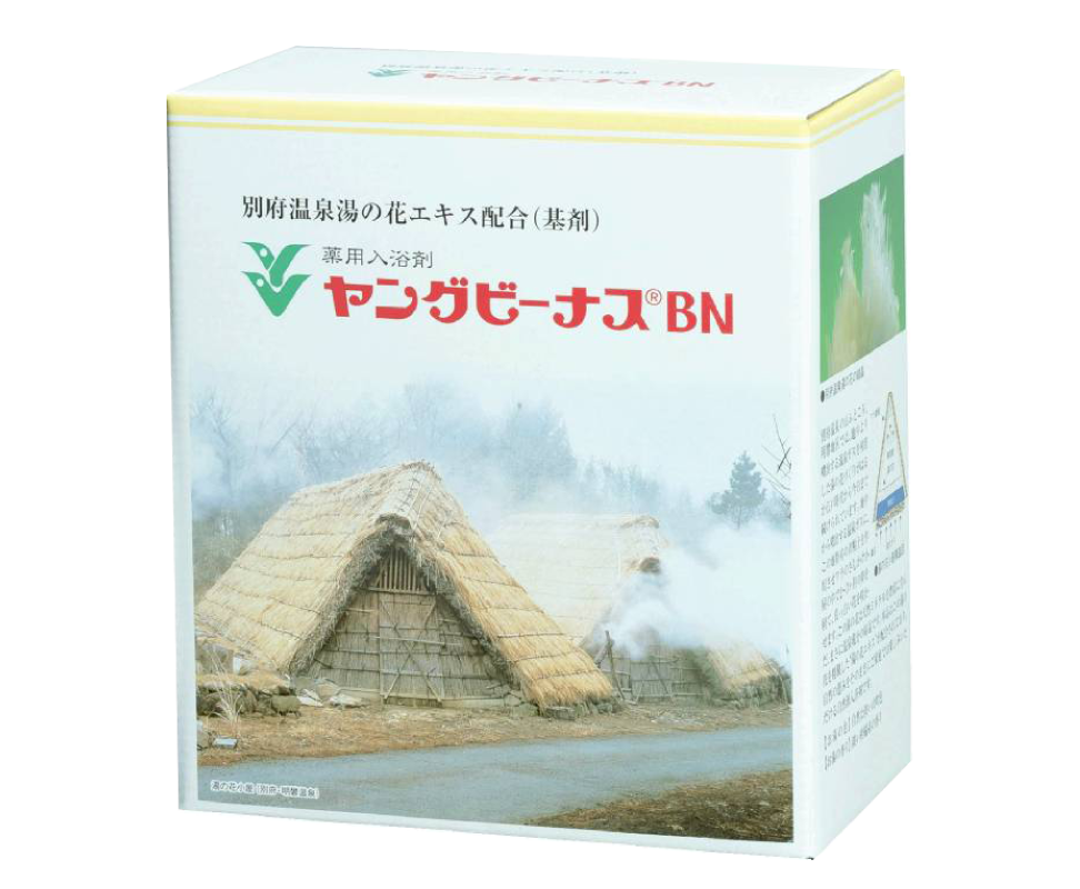戦後、傷病兵が湯の花の温泉で傷をいやしていたことから、家庭でも使えないかと研究が始まりました。湯の花は強酸性なので、そのままでは風呂釜などを傷めてしまいます。そこでヤングビーナスBNは湯の花を精製したエキスと有効成分を混ぜ合わせて、家庭でも使えるようにしました。伝統の技と現代の技術、健康への思いから生まれた温泉のような湯ざわりが楽しめる入浴剤なのです。