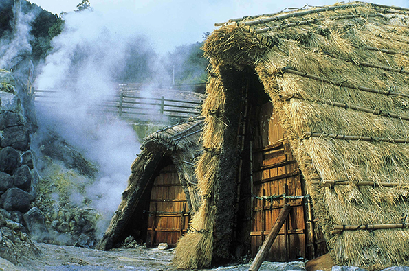 湯の花小屋での湯の花製法は、国の重要無形民俗文化財に指定されている -