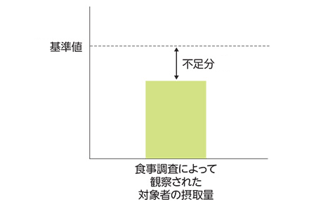 図1.食事摂取基準の基準値と対象者の普段の摂取量が分かったときに初めて、基準値を満たすためにはどれくらい必要なのかが明らかになり、そのために何をすればよいのかを考えることができます。