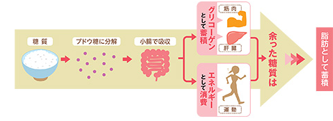 糖質は、摂取すると体内でエネルギーを産生します。エネルギーは、私たちが動いたり、じっとしている間でも呼吸をしたり、臓器を動かしたりするために使われており、生きていくために必要なものです。けれども、摂りすぎると体内で脂肪に変えられて蓄えられ、体重が増えます。この糖質から摂取するエネルギーを控え、ほかにエネルギーを産生する脂質やたんぱく質などから摂取しましょうというのが、低糖質ダイエットの考え方のようです。