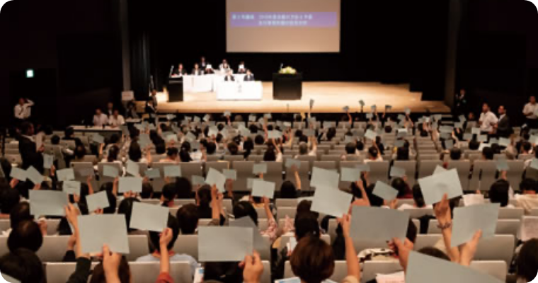 一年間の活動や経営報告を承認したり、新しい年度の計画や予算を審議し決定します。