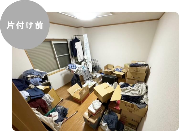 ご家族様に代わって家のかたづけを、分別から清掃までご要望に応じてお手伝いさせていただきます。人生の節目の整理が必要な方、お見積もりは無料、お気軽にご連絡ください。