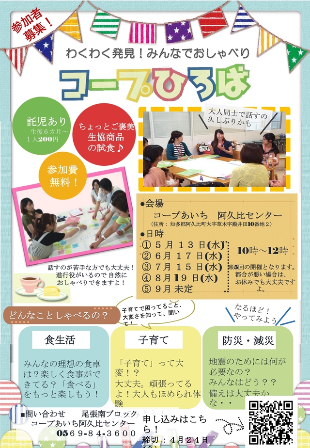 - 参加費:無料 ※託児あり(生後6か月~/1人200円)
