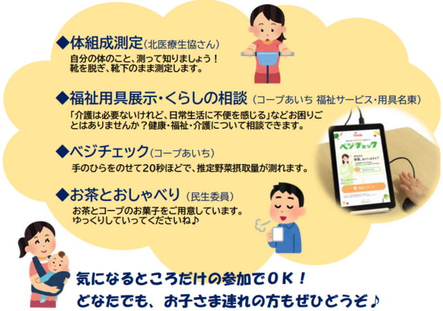 お気軽に健康チェックをしたり、おしゃべりを楽しみませんか?
