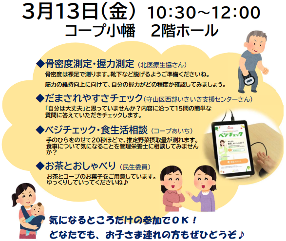 お気軽に健康チェックをしたり、おしゃべりを楽しみませんか?