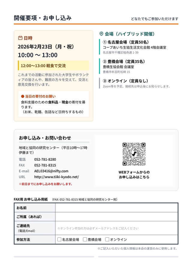 難民食料支援学び語り合う会⑮ 支援から共生へ つながりがひろがっています