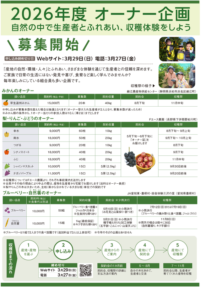 【募集開始】2026年度オーナー企画のご案内~産地・生産者と交流体験~