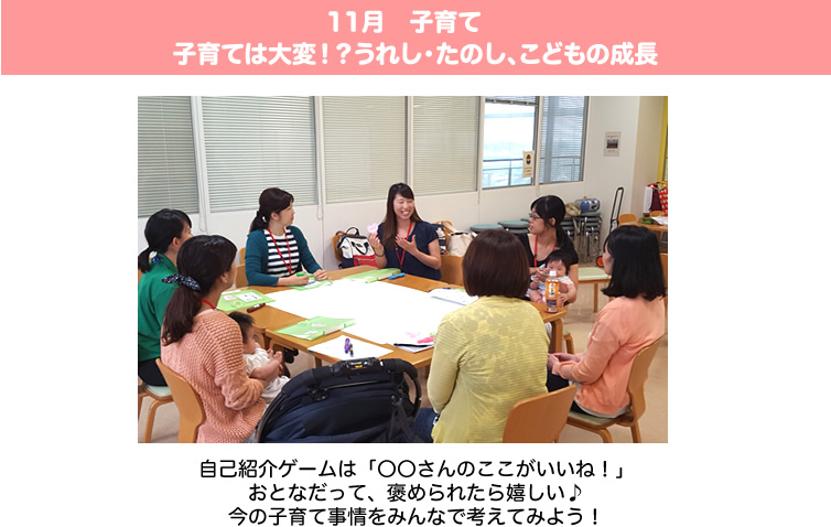 離乳食交流会で職員から声を掛けられて、友達と2人で参加しました。たまたま他の参加者も子どもが全員同年代で、初回から仲良くなりました。託児をお願いしている間はママだけでおしゃべりできて、とてもうれしかったです。