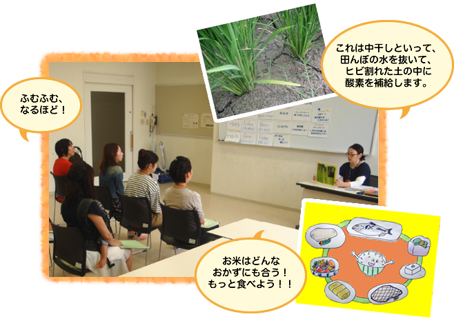 紙芝居「いただきまーす」で、お米の生育から食卓までの流れを見ます。